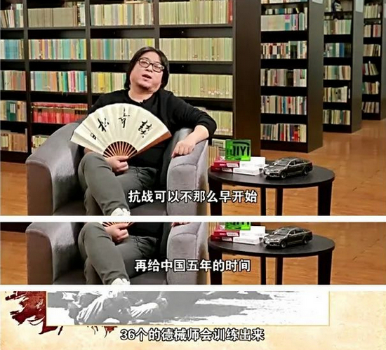 高晓松又意犹未尽地说到:“蒋介石本身就是反日的”,否认蒋介石消极抗日。