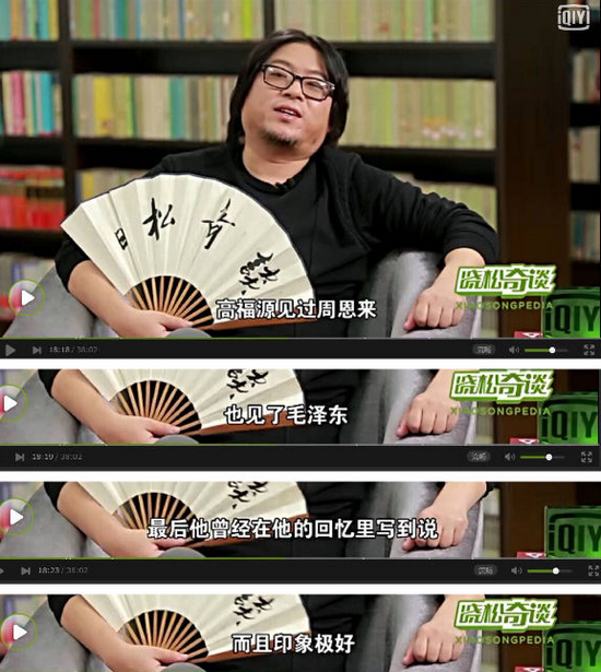 而像这样的胡编乱造不在少数,在《西安事变》一集中,高晓松说:“高福源见过周恩来,也见过毛泽东,而且印象极好,最后他曾经在他的回忆录中写到”。