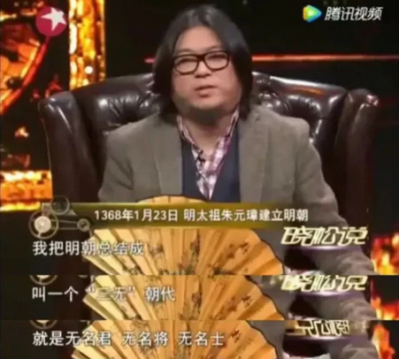 他表示明朝是三无朝代,无明君、无名将、无名士……朱元璋棺材板都要按不住了。