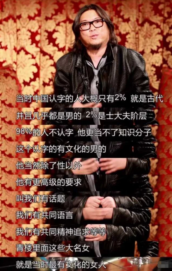 又说因为古时候有文化的男子需要寻求有共同话题的异性,所以青楼的花魁们是当时最有文化的女人。