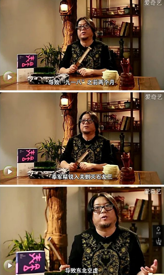 同时,高晓松把“九一八日军侵华”的原因,也归结为“张学良导致九一八事变”。
