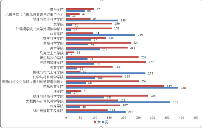各学院男女生人数