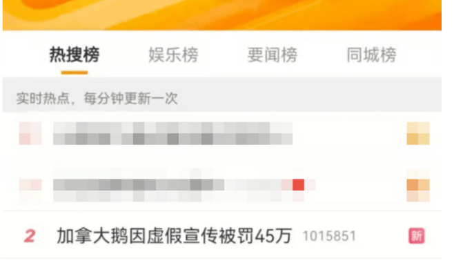 相关新闻发布后,#加拿大鹅因虚假宣传被罚45万元#登上微博热搜。