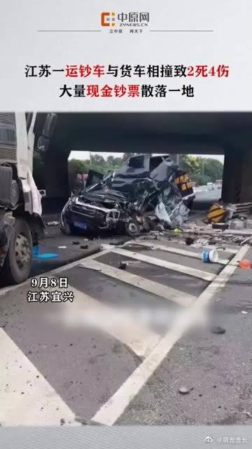突发9月8日,江苏宜兴一辆运钞车与货车相撞致2死4伤……