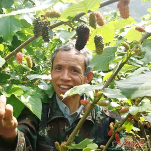潘启南正忙着采摘成熟的桑葚果。