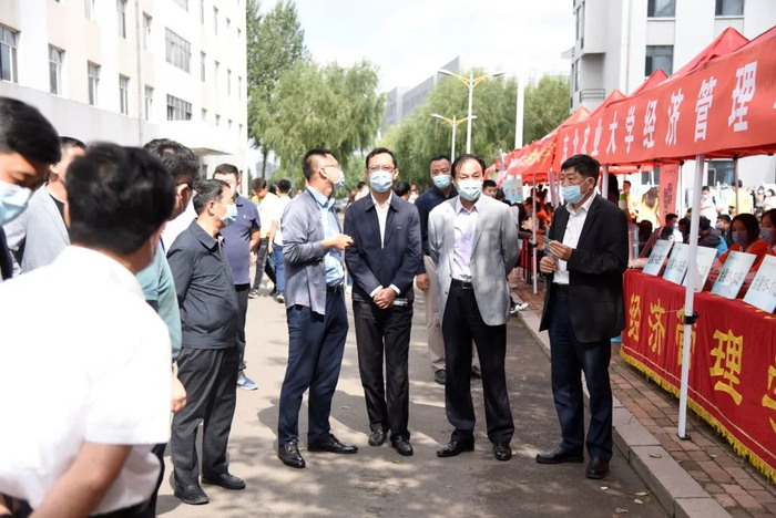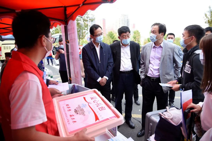 校党委书记李长生、校长包军等学校领导深入报到现场,与2021级新生亲切交谈,向他们表示热烈的欢迎,并慰问了现场的工作人员与志愿者。