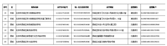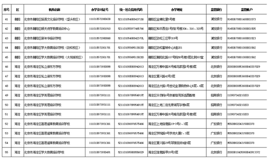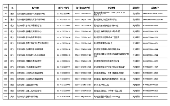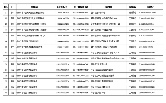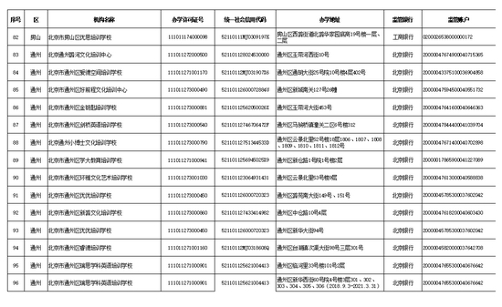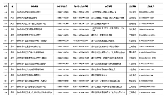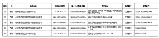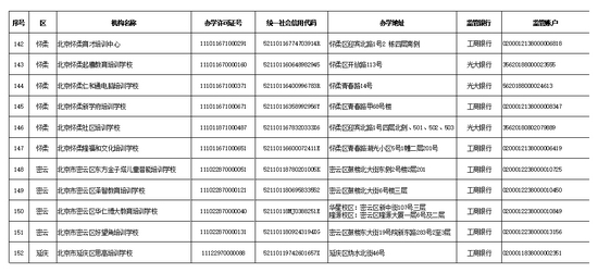首份“白名单”共涉及152家机构,公示内容包括培训机构名称、办学许可证号、统一社会信用代码、办学地址、监管银行和监管账户等各类信息。