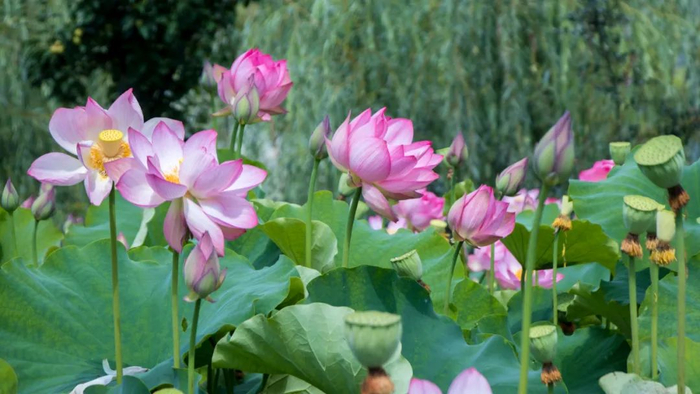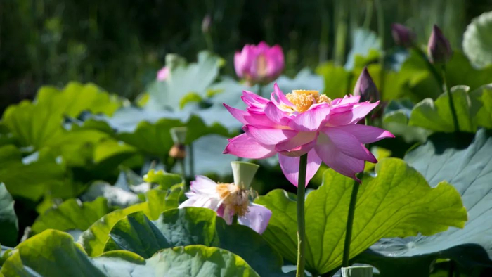 一朵朵荷花争先恐后“探出”的身姿