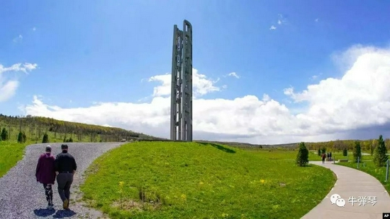 后来,在这架飞机的坠毁地,建了一座“声音之塔”,塔上有40 个风铃,向40名勇士致敬。