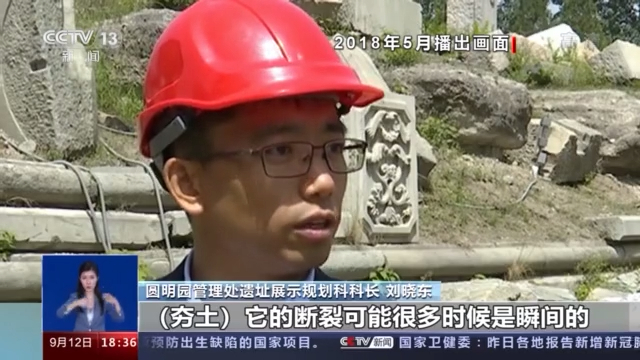 圆明园管理处遗址展示规划科科长 刘晓东:(夯土)它的断裂可能很多时候是瞬间的,因为夯土它是受压而不受拉,它抗剪切力的能力是弱的,所以对现在夯土遗址的保护,也是迫在眉睫的。