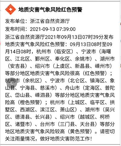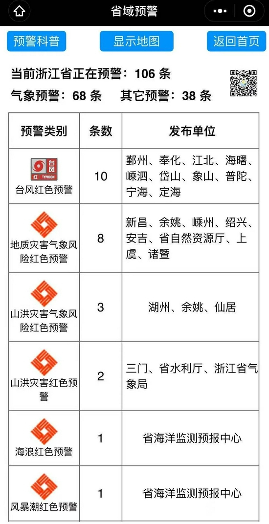目前浙江省内已有106条预警