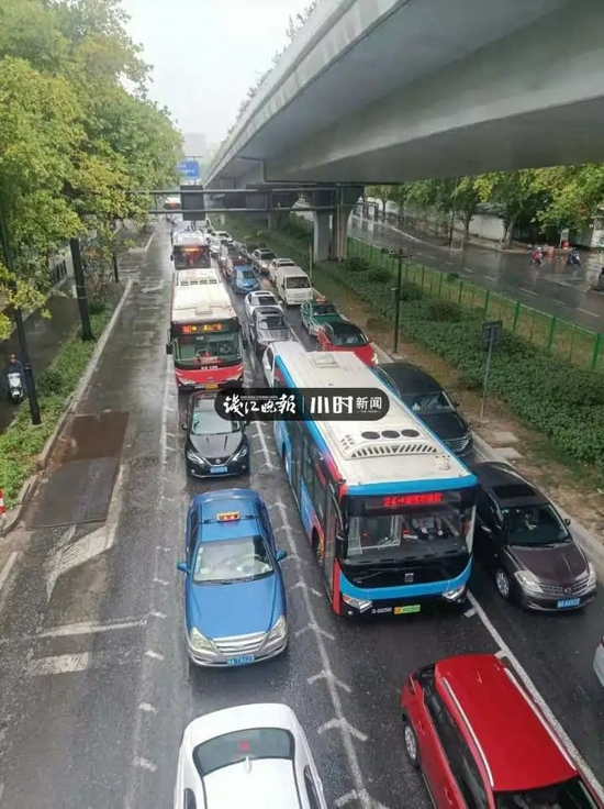 周一早高峰,本来就让人头疼,加上台风“灿都”影响,那就真是“堵”就一个字了。