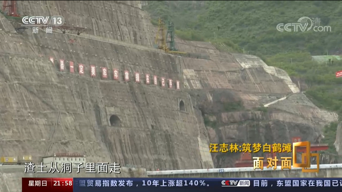 白鹤滩工程建设部主任 汪志林:当时这两边都是深山峡谷,它最大的难度两边66米高的边坡,要把它的石渣削下来难,因为金沙江还在流,渣子不能入江,那我们采取了很多措施,后来想的就是,在边坡上挖洞,我们从洞里走,渣子也全部从洞里运走。