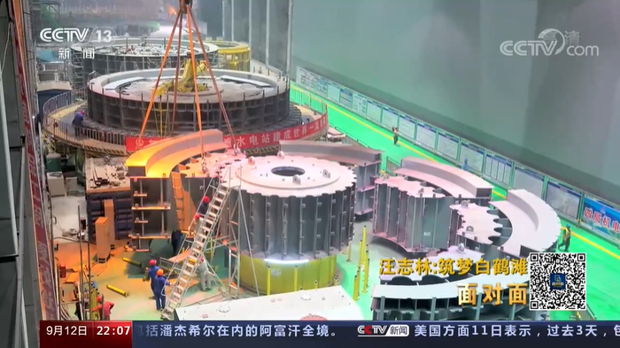 白鹤滩工程建设部主任 汪志林:我们是100万的单机量,也就是说一个小时可以发出去100万度电,我们16台机全部发电,一天的发电量可以够50万个家庭用一年。100万的单机量是当今世界上最大的水能发电机组,现在没有任何地方超过它。
