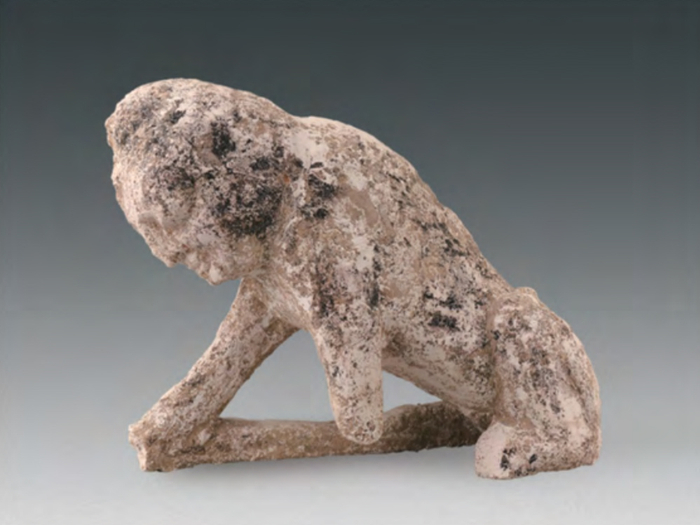 木武士俑由木雕而成,残高各为54厘米、60厘米,已完全腐朽,用石膏灰浆灌注填充提取。头戴兜鏊,粗眉弯曲,双目圆睁,尖鼻高耸,嘴角宽厚,“八”字胡。上身前倾扭胯,四肢残,前腿微屈。面部眉、眼、胡须涂黑彩,其余部分均涂红彩。木镇墓兽为人面兽身,身长48厘米、残高30厘米,头部略下垂,前肢直立,后肢屈蹲,面部涂红彩,其余部位涂黑彩。专家称,以往北魏墓中发现的武士俑、镇墓兽有的为图像、有的为石质或陶质,此次北魏“太和元年”贾宝墓中的木质武士俑、镇墓兽属首次发现,为进一步认识北魏平城时期民族融合、异地移民的丧葬制度提供了实物资料。