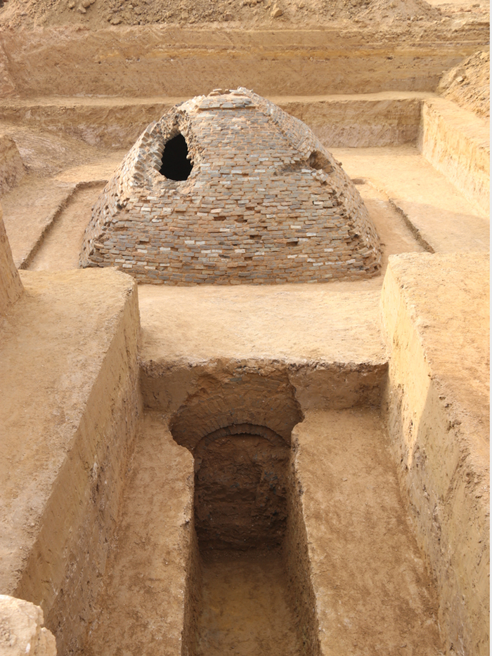 “太和元年”贾宝墓为长斜坡墓道方形单室四角攒尖顶砖券墓,南北总长15米、墓底距地表7米,由墓道、甬道、墓室组成,是魏晋以来,特别是北魏平城时期较为多见的墓葬形制。