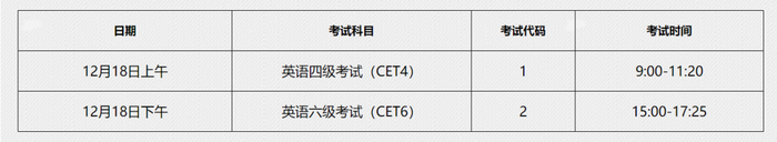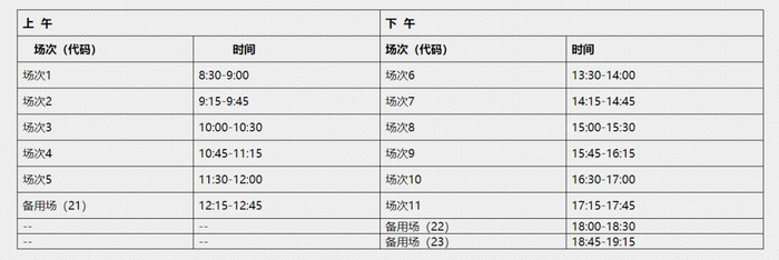 英语四级口语考试(CET-SET4)考试时间为11月20日(F213次),英语六级口语考试(CET-SET6)考试时间为11月21日(S214次),具体场次安排如下: