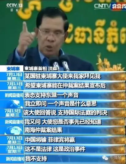 他还透露,某国驻柬大使,曾向柬埔寨施压支持所谓南海仲裁,否则取消对柬埔寨的援助。但洪森拍案而起,“我告诉过你,洪森不会轻易屈服于外部压力”。