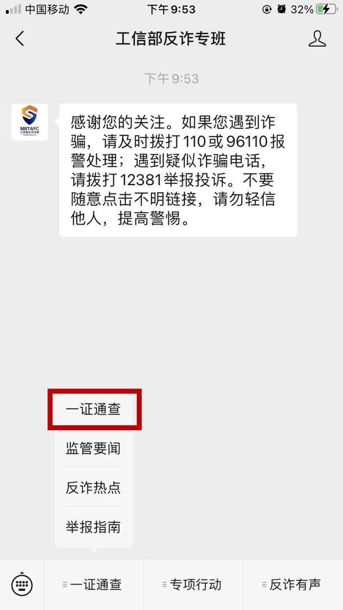 “工信部反诈专班”微信公众号
