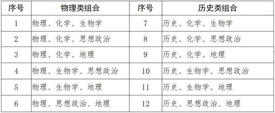 其中,“3”为全国统考科目语文、数学、外语(英语、日语、俄语、德语、法语、西班牙语任选一门)3门,不再分文理科,其中外语科目考试含听力和笔试两个部分;“1”指考生从物理和历史2门科目中任选1门,“2”为从思想政治、地理、化学、生物学4门科目中任选2门。报考体育类、艺术类等专业的考生还须按照要求参加相应专业考试。