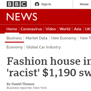BBC报道截图:时尚品牌因售价1190美元的“种族主义”运动裤陷入风波
