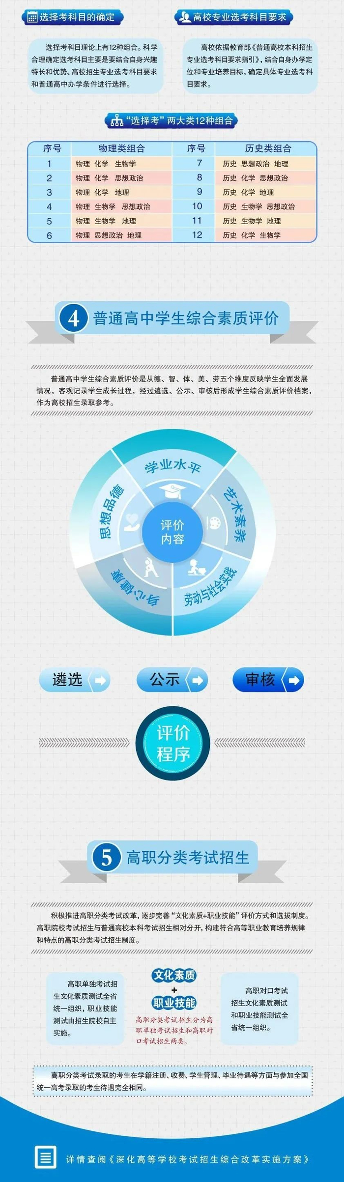 完善普通高中学业水平考试制度;健全普通高中学生综合素质评价制度;深化普通高等学校招生改革;完善高职分类考试招生录取。