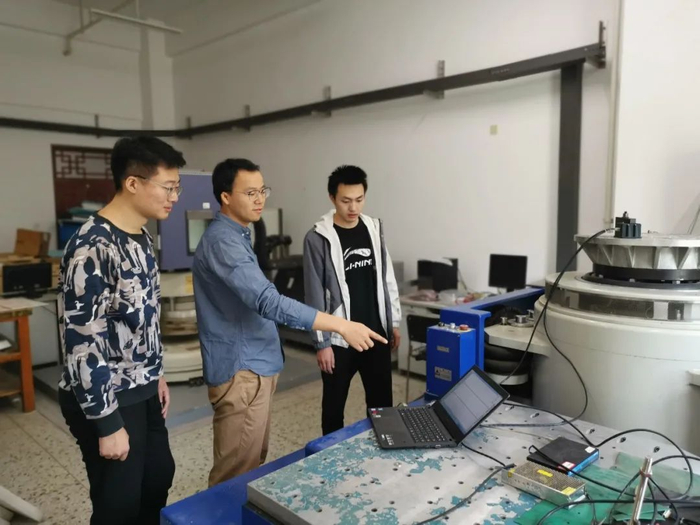 团队利用三轴惯性测试转台模拟飞机运动状态