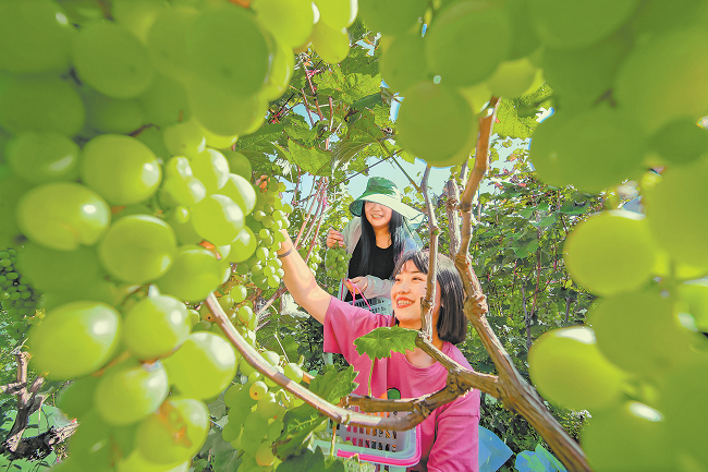 9月11日,卢氏县范里镇南苏村旭苑生态农庄,众多市民前来采摘游玩。据悉,该农庄把畜牧饲养和林果种植相结合,走上了绿色循环经济之路,带动了当地群众劳务增收。(聂金锋 摄)