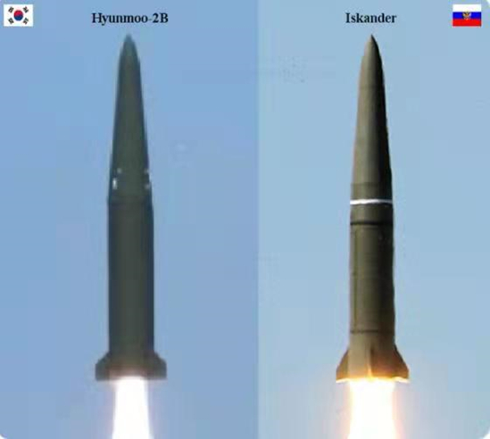 韩国“玄武-2B”导弹(左)与俄罗斯“伊斯坎德尔”导弹(右)