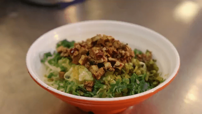 根据个人口味撒上葱花和秘制咸菜