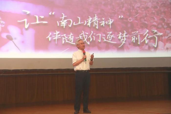 冉丕鑫校长谈到,去年钟院士获颁勋章后从北京归来,师生员工自发在越秀校区欢迎他,高喊“英雄归来,国士无双”——南山精神已是深刻地融入了全校师生员工的骨子和血脉之中。