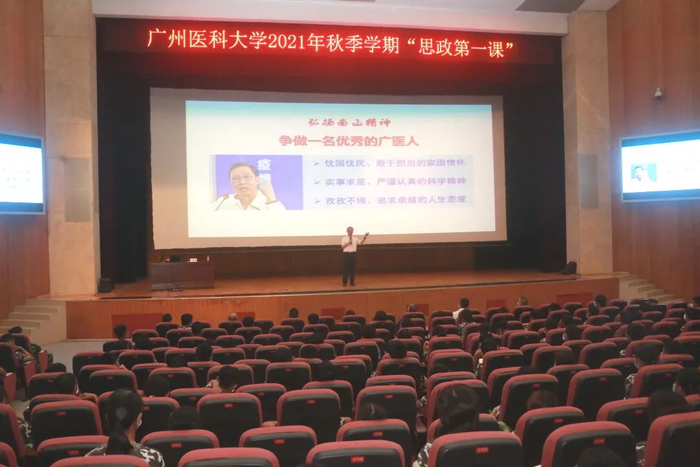 在9月16日的思政第一课上,校长冉丕鑫教授深刻阐述了南山精神的丰富内涵,以及在其指引下广医的跨越发展历程,并号召同学们传承与弘扬南山精神,敢为人先、追求卓越,在实现中国梦的实践中放飞青春梦想。