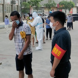 高温烈日下,汗水早已浸湿了防护服,双手也被手套里的汗水浸皱,嗓子也已经喊哑,但是他们的目的只有一个“让疫情早日平息”。他们坚守在各自的岗位上,紧张而有序地忙碌着,丝毫没有半句怨言。