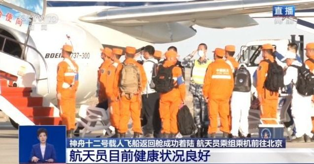 原标题:在着陆场逗留两小时 三名航天员乘机前往北京