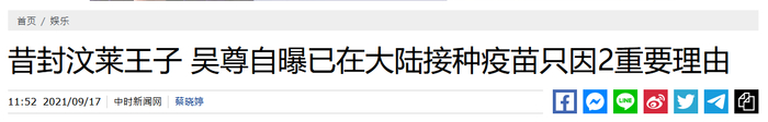 文莱籍艺人吴尊全家打中国疫苗:比起其他国家,中国把疫情控制的太好了