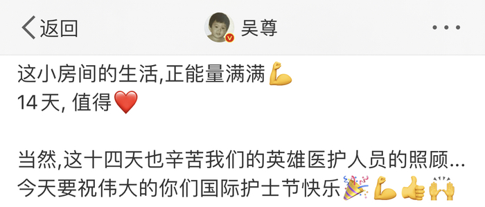 偶尔来中国工作时,他会在个人社交媒体上展示自己的隔离生活,向中国的医护人员和抗疫一线工作人员表示感谢。