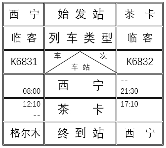 2021年10月1日至7日西宁至茶卡(盐湖站台)间加开K6831/2次临时旅客列车。