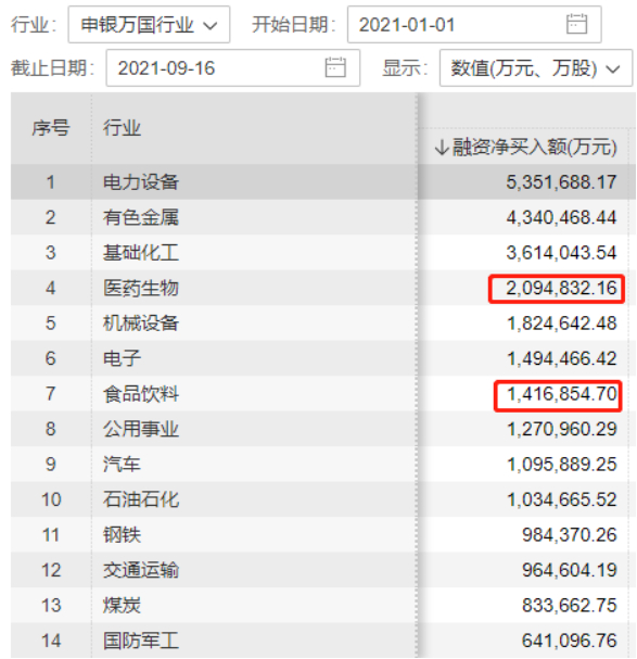 据Wind统计,今年以来,融资客买入电力设备、有色金属、基础化工等热门行业金额居前,医药生物、食品饮料等大消费板块也获融资客大额净买入,今年以来的净买入额分别为209亿元和141亿元。