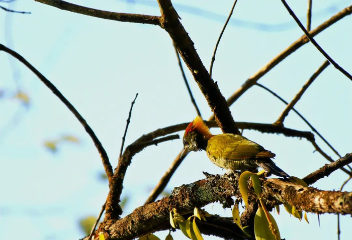 9月14日,保山市龙陵小黑山省级自然保护区技术人员在整理野生动物照片时,发现一种头顶蓬松“小黄冠”且体羽格外惹眼的小鸟。经国家林业和草原局昆明勘察设计院技术人员曾卫鉴定,确定为啄木鸟科绿啄木鸟属的黄冠啄木鸟。