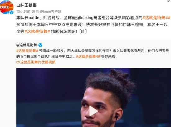 综艺节目《这就是街舞4》宣传。来源:@口味王槟榔官方微博