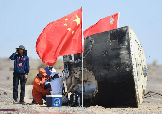 当3名航天员远离地球、巡游寰宇时,留在家乡的父老乡亲们,仍在一如既往、年复一年地耕耘劳作。荣誉,属于国家和民族。