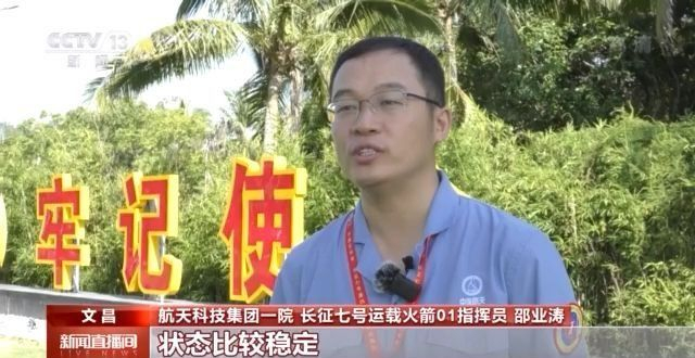 航天科技集团一院 长征七号运载火箭01指挥员 邵业涛:长七火箭本发是遥四任务,我们火箭一直在不断地完善细化,现在技术状态基本上已经固化,状态比较稳定。