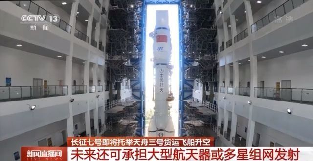 航天科技集团一院 长征七号运载火箭轨道主管设计师 张博戎:它不仅可以发射天舟货运飞船,也可以发送其他的低轨卫星,甚至和我们的上面级相组合,可以进行一箭双星或者一箭多星的任务,在未来一些低轨卫星的组网工作中也都会发挥更多的作用。