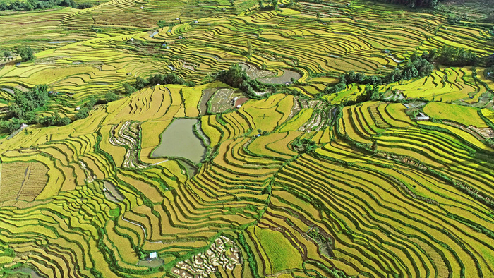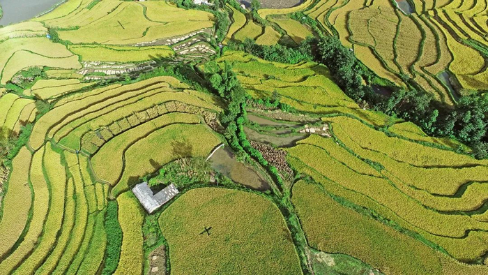 层层叠叠的梯田翻起金色的波浪