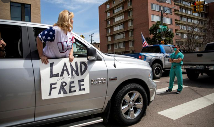 值得一提的是,去年美国新冠疫情暴发后,也曾有许多美国人打着“美国是自由之地”的旗号上街游行,抗议限制性防疫措施。
