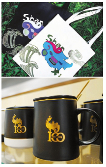帆布包和马克杯文创产品。