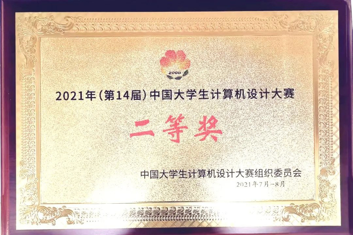 原标题:喜讯 | 我校学生获2021年(第14届)中国大学生计算机设计大赛二等奖