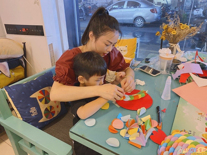 中秋佳节,家长和孩子们一起利用各种环保材料来手工制作创意灯笼,展现美好的中秋愿景。(巴马县纪委监委 陈雪)