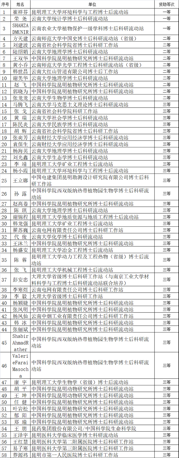 原标题:正在公示!云南省2021年博士后相关资助项目评审结果公布