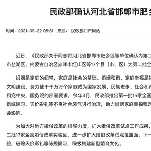 央广网北京9月23日消息(总台央广记者李杨)民政部近日将河北省邯郸市肥乡区等17个单位确认为第二批全国婚俗改革实验区,实验时间为3年,自2021年9月起至2024年9月止。近几年来,各地高价彩礼的消息屡见不鲜。高价彩礼、婚礼大操大办也给许多家庭带来沉重负担,甚至对社会风气造成不良影响。